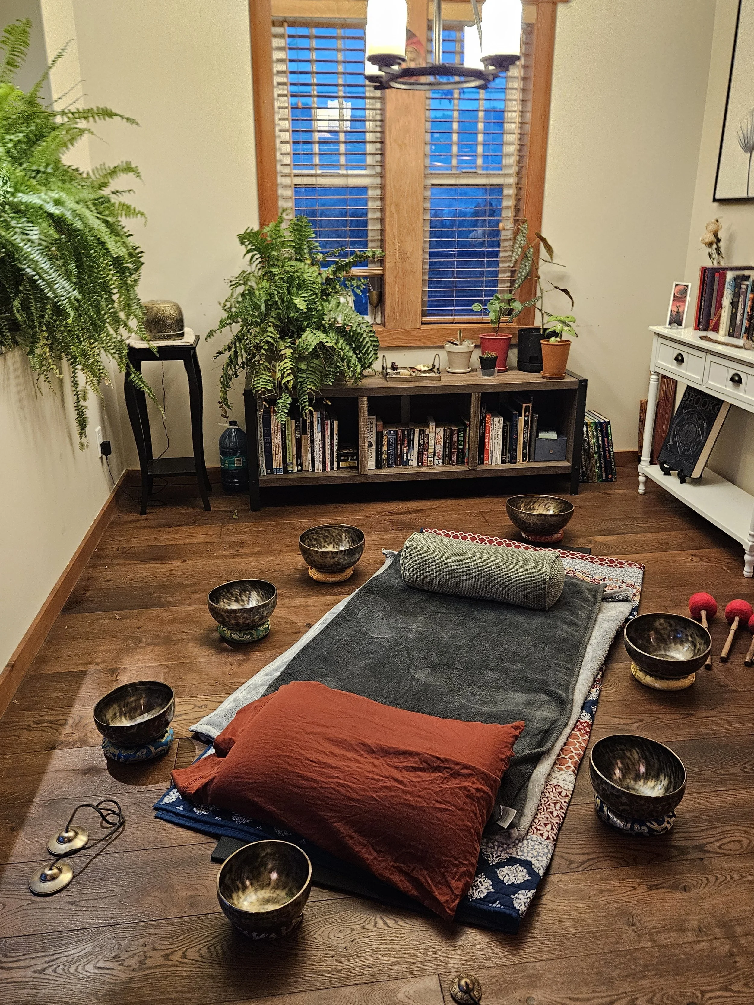 A vibrational Sound Journey is a gentle, immersive sound experience that often induces a dreamlike state of deep relaxation. Using various techniques, practices and instruments acquired along the way, I take you on an intuitive journey of vibration and frequency. All that is required of you is to arrive exactly as you are, lie down under a warm blanket and allow the energy to go where it needs to go.